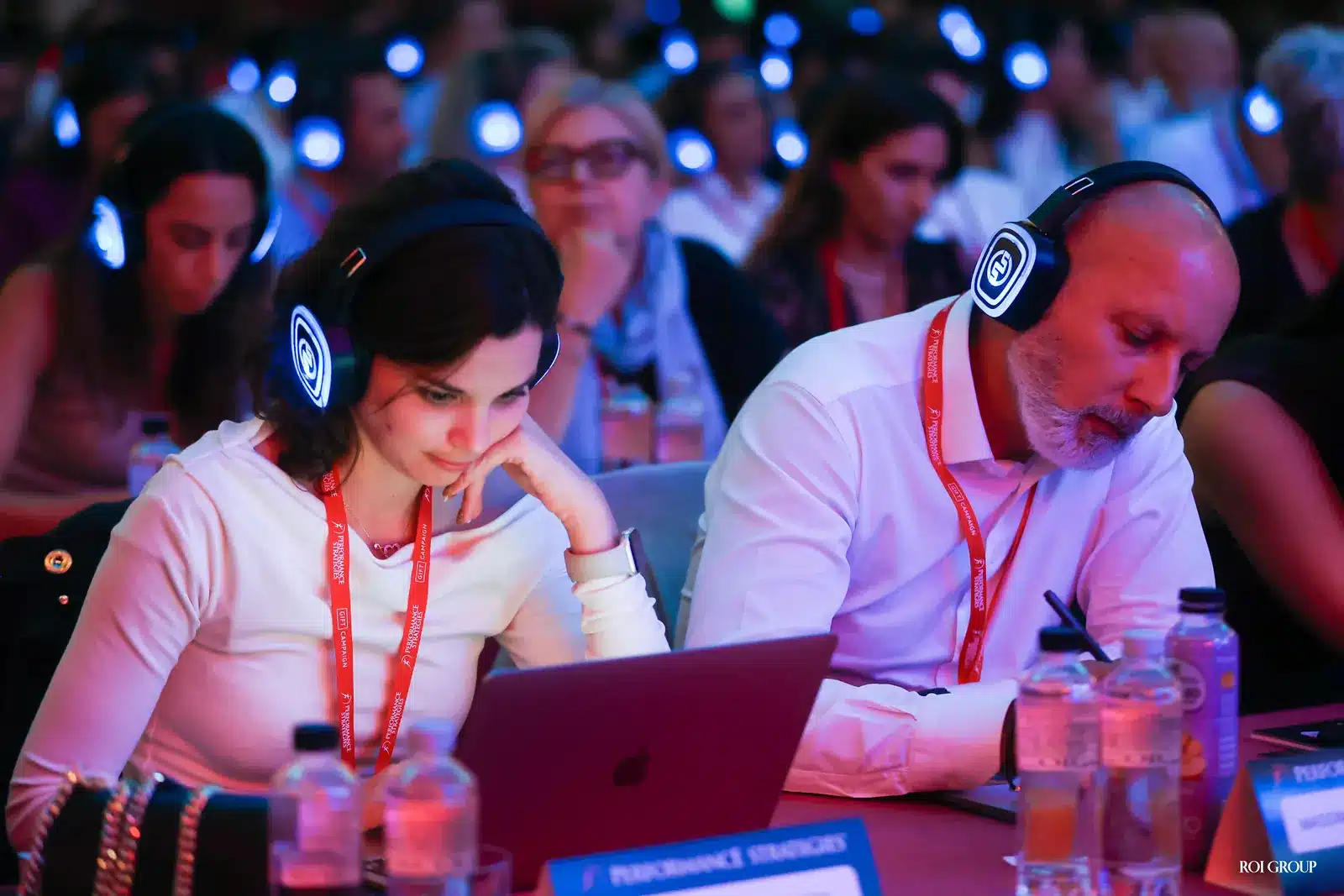 Radiofrequenza UHF-RF per totale fedeltà di ascolto. Nessuna cabina, piena libertà di movimento per interpreti e audience.